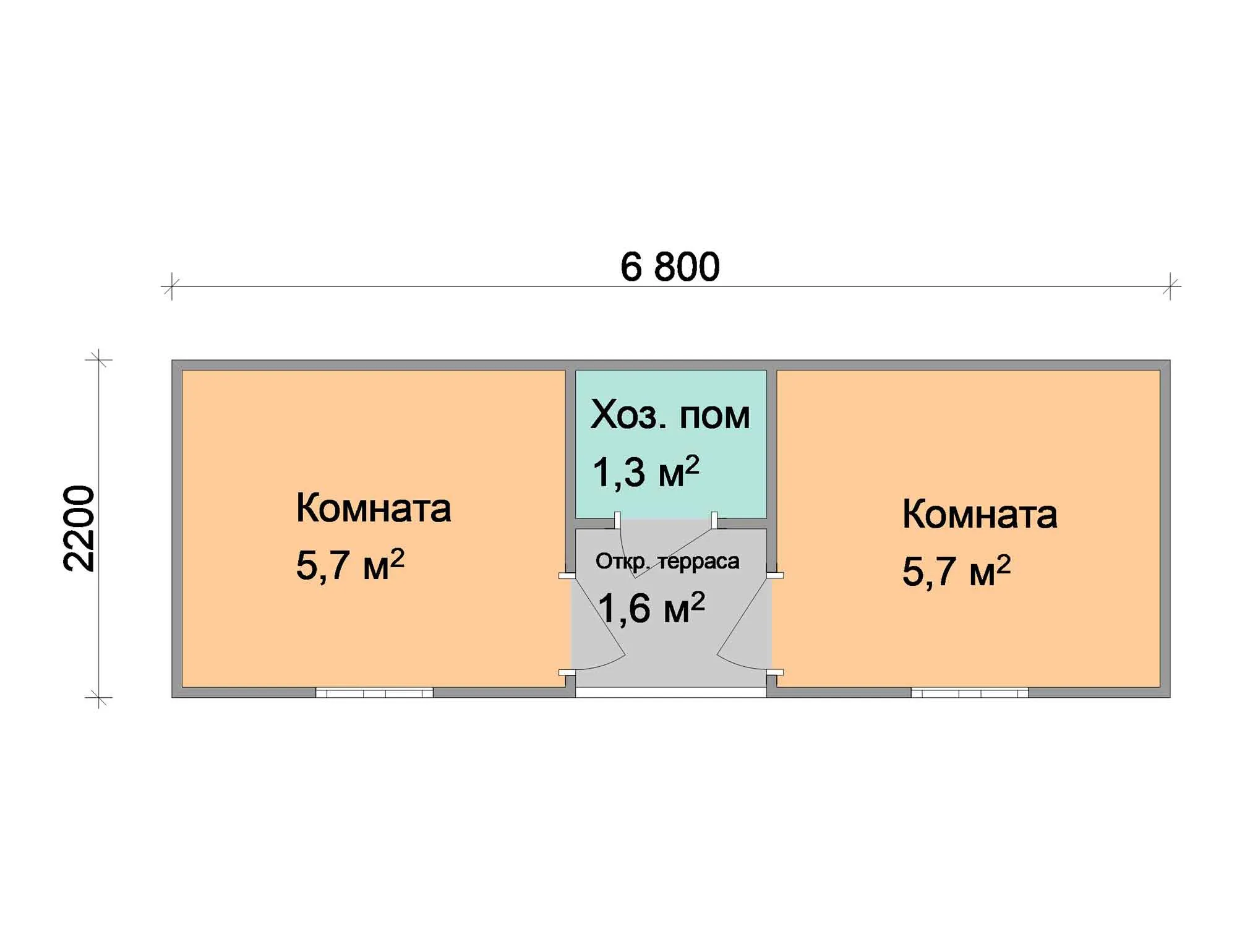 Дачная бытовка Тюльпан6.8x2.214.96ДВП-Оргалит:
