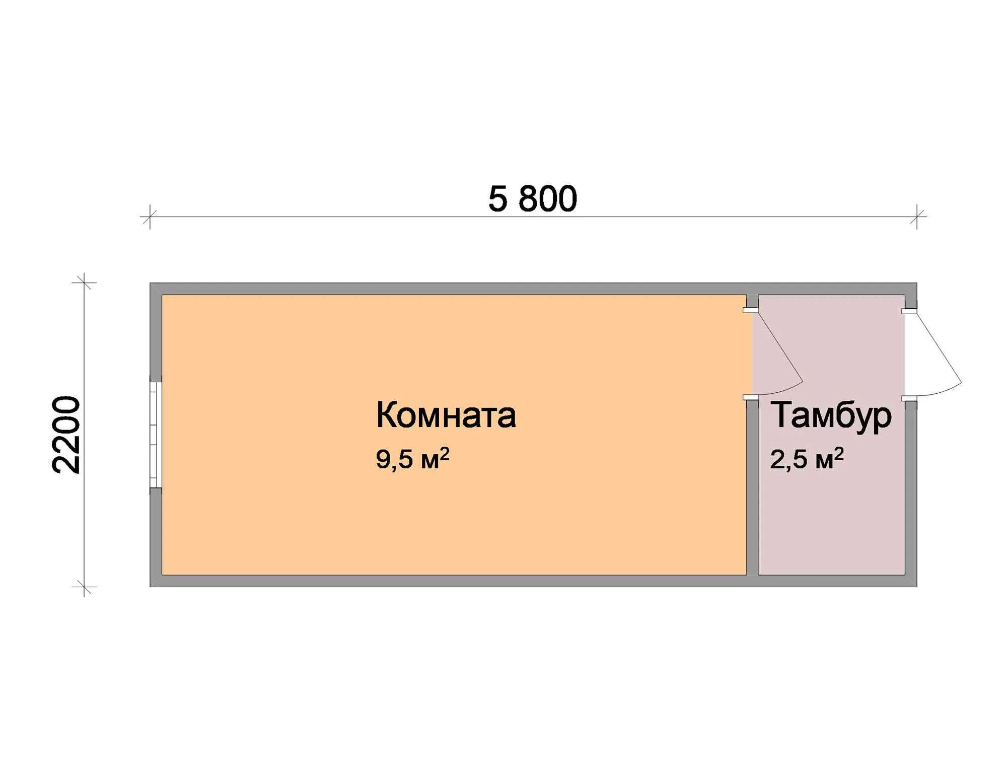 Блок контейнер с тамбуром 5850х24005,85х2,414,04ДВП-Оргалит: